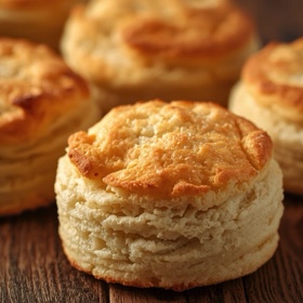 Los biscuits americanos son panecillos suaves y hojaldrados, servidos tradicionalmente en desayunos o como acompañamiento de comidas. El secreto para lograr una textura ligera y muchas capas es la mantequilla bien fría y plegar la masa varias veces.
